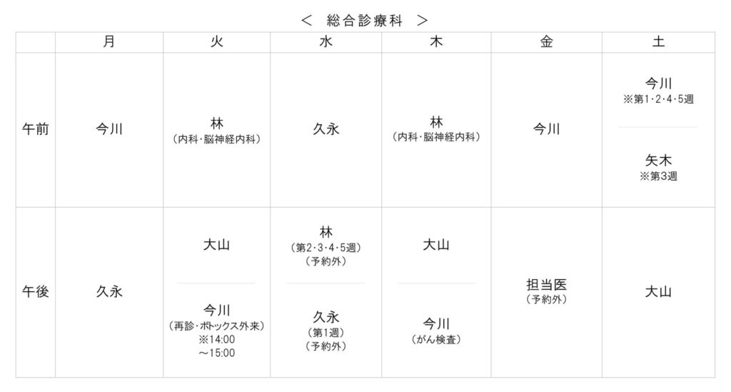 ※緊急手術等で担当医師が変更、又は休診になる場合があります。ご了承ください。